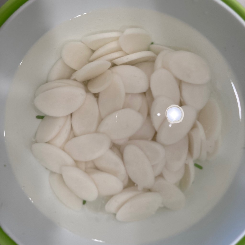 • Rice cakes. Soak rice cakes in cold water for 30-60 minutes and then drain thoroughly.