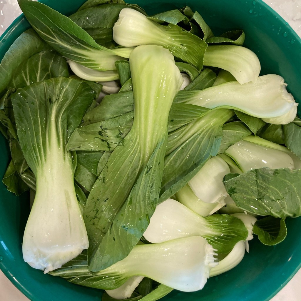 • Bok Choy. Peel the leaves and rinse and drain them thoroughly.